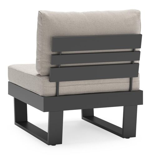 De Alora loungezetel is de ideale toevoeging tot jouw terras of lounge. Je kan dit tussenstuk gebruiken als extra uitbreiding van jouw loungeset. Je kan dit in de lounge zelf plaatsen om een extra zitplaats te creëeren. Daarnaast kan je het tussenstuk ook los gebruiken als 1-zit. De loungekussens zijn inbegrepen en gemaakt uit Weather+ Softtouch. Deze kussens hebben een olefin stof en, waardoor ze zacht aanvoelen en vuilafstotend zijn. Weather+ Softtouch kussens zijn beperkt waterafstotend en hebben één laag standaard schuimkussen in een waterbestendige binnenhoes. In de winter of bij langdurige regen bewaar je de kussens best binnen.