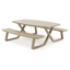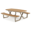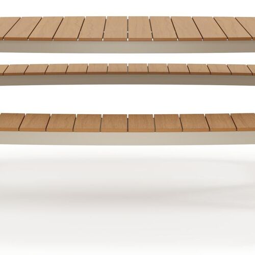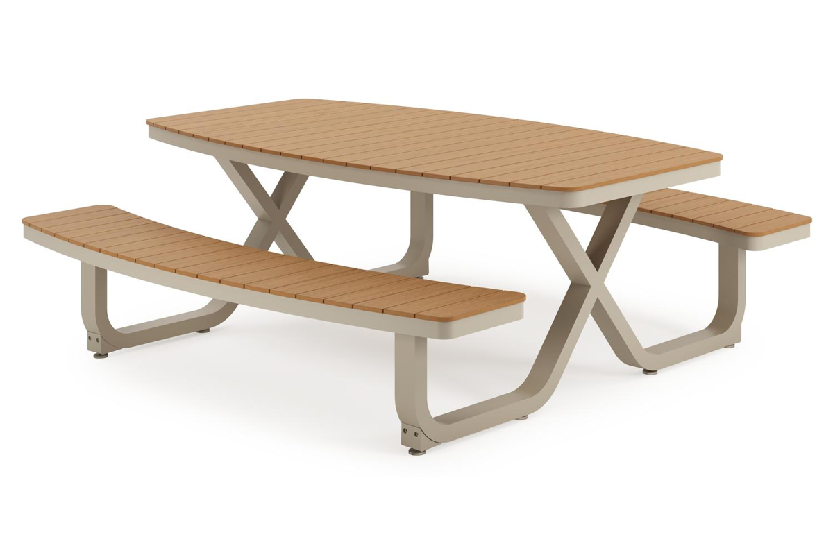 De Alora picknicktafel heeft een modern ontwerp met vloeiende, gebogen lijnen die zorgen voor een uitnodigende uitstraling. De afgeronde hoeken van zowel het tafelblad als de banken geven het geheel een zachte, eigentijdse look. Het frame van de tafel is gemaakt uit roestvrij aluminium, een sterk, maar toch licht materiaal dat makkelijk verplaatsbaar is. Het oppervlak is glad afgewerkt waardoor het geen vuil aantrekt en onderhoudsvriendelijk is. De poedercoating zorgt voor de UV- en weerbestendigheid van je meubel.Een tafelblad uit polywood heeft de look van hout, maar is eigenlijk kunststof. Je geniet van de charmante uitstraling van hout, maar het barst of scheurt niet en behoudt jarenlang zijn unieke bruine houtlook.