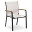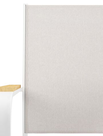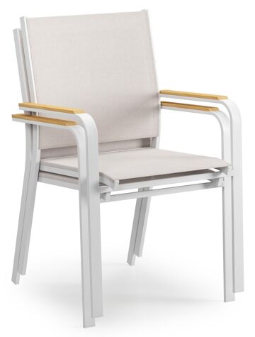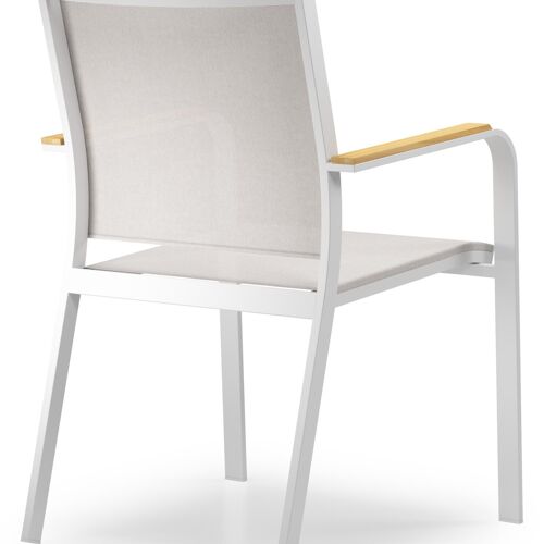Amalfi tuinstoel in wit aluminium en beige single textileen en teak armleuning | Exterioo