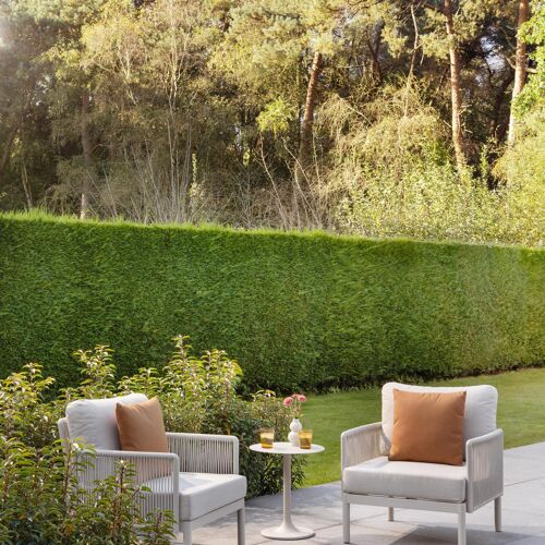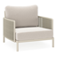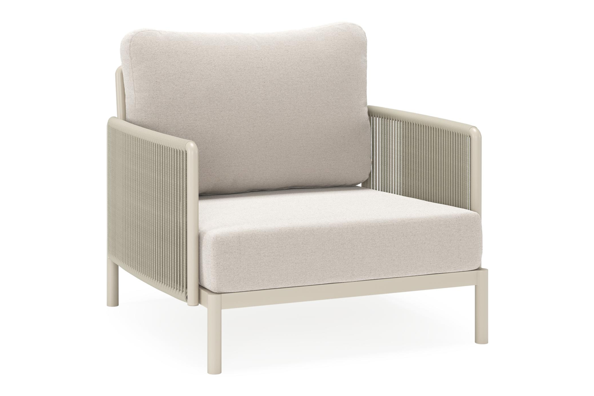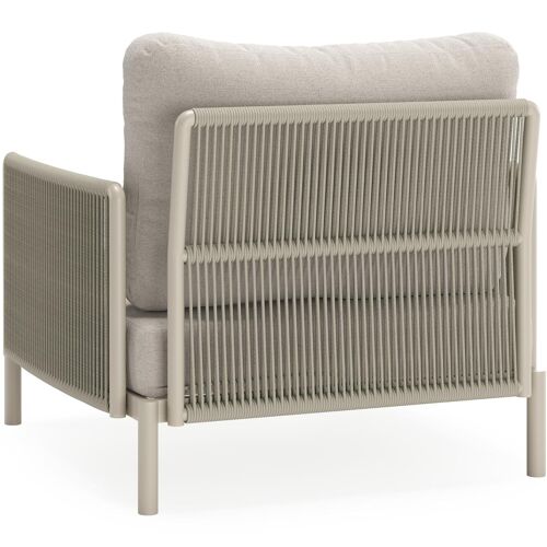 Amarante loungestoel in beige aluminium en beige verticaal geweven ronde rope met beige weather+ softtouch kussen | Exterioo