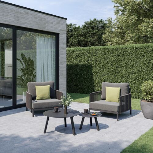 Amarante is een lounge die de moderne uitstraling van aluminium combineert met handgeweven rope. Deze set is ontworpen met gebruiksgemak in gedachtdankzij het gebruik van weerbestendige materialen. De loungekussens zijn inbegrepen en gemaakt uit Weather+ Softtouch. Deze kussens hebben een olefin stof waardoor ze zacht aanvoelen en vuilafstotend zijn. Weather+ Softtouch kussens zijn beperkt waterafstotend en hebben één laag standaard schuimkussen in een waterbestendige binnenhoes. In de winter of bij langdurige regen bewaar je de kussens best binnen.