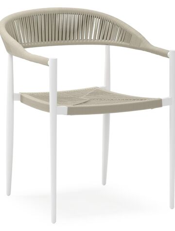 De Guarda stoel voegt een stijlvolle, zomerse touch toe aan je terras of balkon dankzij zijn elegante rope-afwerking. Het lichte frame van roestvrij aluminium is niet alleen duurzaam, maar ook gemakkelijk te verplaatsen. De zitting en rugleuning van stevig, onderhoudsvriendelijk rope bieden een aangenaam zitcomfort. Daarnaast is de Guarda stoel stapelbaar, zodat je hem eenvoudig kunt opbergen en ruimte bespaart.