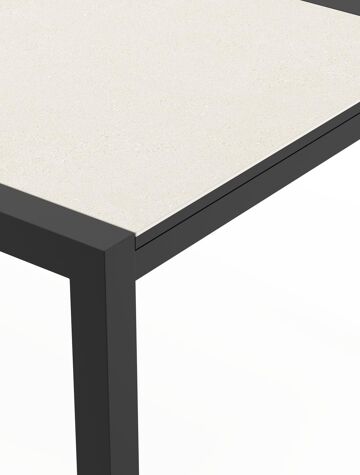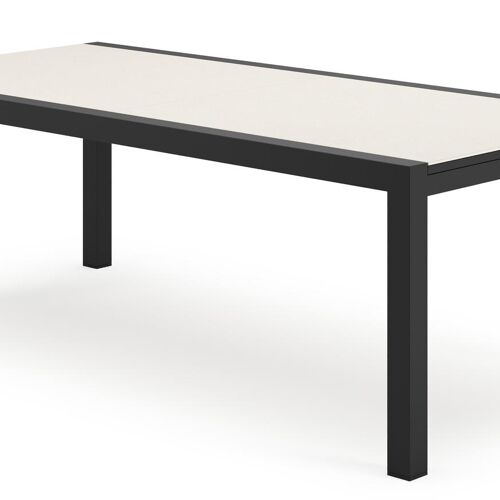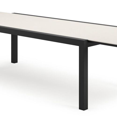 Calobra rechthoekige uitschuifbare tuinset in zwart aluminium en sintered stone crema minerale met 10 Zamora tuinstoelen | Exterioo