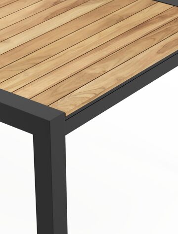 Deze Calobra tuintafel behoort tot de Bristol Essentials collectie. Het frame van de tafel bestaat uit aluminium, een licht en roestvrij materiaal. Het tafelblad van deze tafel is gemaakt van teak. Teak is een kwalitatieve houtsoort en is resistent tegen verschillende weersinvloeden. De goudbruine teak kleur zorgt voor een warme, natuurlijke uitstraling. De afmetingen van de tafel zijn L 220 x B 107 x H 75 cm. Met deze Calobra tuintafel beleef je onschatbare momenten voor een betaalbare prijs.