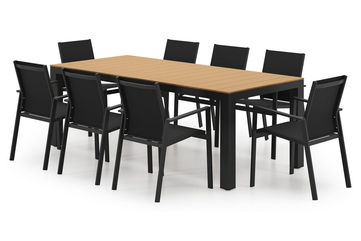 Calzo tuinset in zwart aluminium en polywood met 8 Bahia tuinstoelen | Exterioo