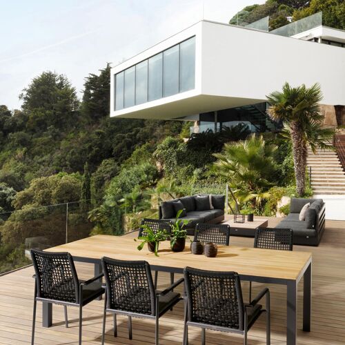 Capri tuintafel in zwart aluminium en teak - L 240 x B 100 x H 75,5 cm | Exterioo