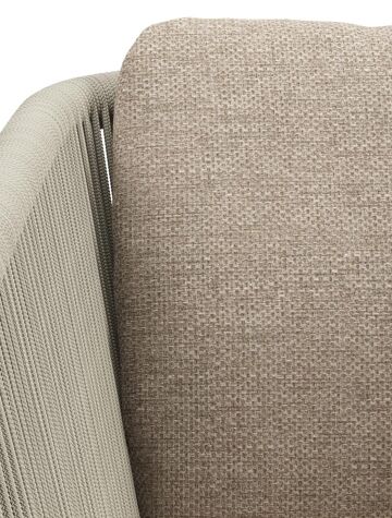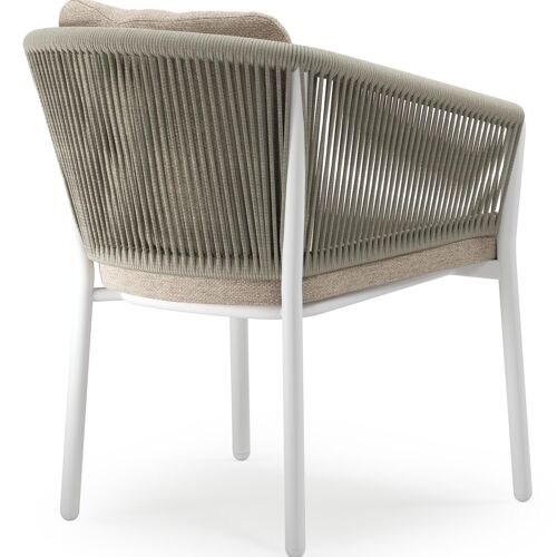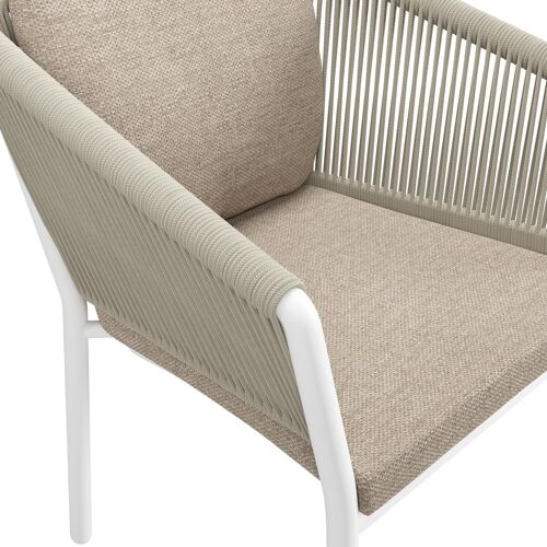 Gerona tuinstoel in wit aluminium en beige verticaal geweven ronde rope met kussen in Rustic Weather+ Softtouch | Exterioo