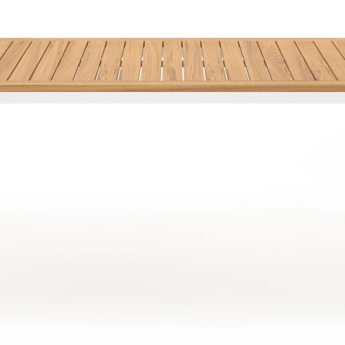 Een tafelblad uit teak staat gelijk aan bijzondere kwaliteit en natuurlijk design. Teak is een kwalitatieve houtsoort gekenmerkt door zijn hardheid. Aangezien hout leeft, kan de structuur of kleur licht anders zijn dan op het beeld weergegeven.
