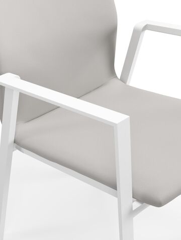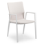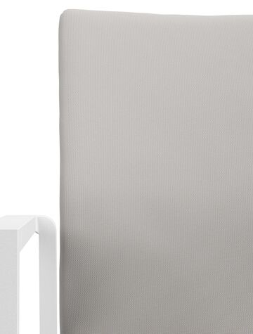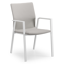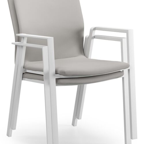 De Madura stoel is een stijlvol afgewerkte stoel met een rugleuning en zitting die volledig bekleed is met stof. De stof is een stevige textilene, een stijlvol en onderhoudsvriendelijk materiaal. Het frame van de stoel is gemaakt uit roestvrij aluminium. De stoel is stapelbaar en dus gemakkelijk op te bergen.
