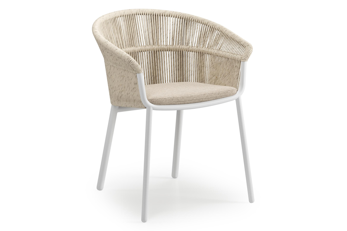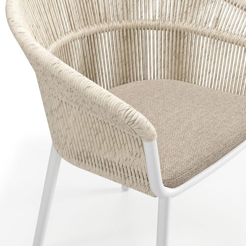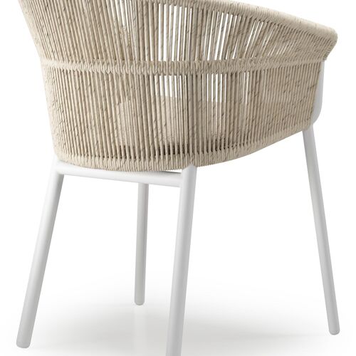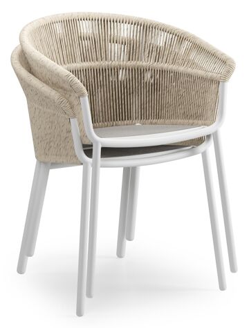 De Matera tuinstoel is een robuuste en ruime stoel met een hedendaagse uitstraling. Het frame is gemaakt uit roestvrij aluminium. De kuip is afgewerkt met wicker, een gevlochten kunststof die sterk en onderhoudsvriendelijk is. De zitting is gemaakt uit stevige textilene. De stoel is stapelbaar en dus makkelijk op te bergen. De stoelkussens zijn inbegrepen en gemaakt uit Weather+ Softtouch. De duurzame kussens voelen zacht aan en zijn vuilafstotend. Weather+ Softtouch kussens zijn beperkt waterafstotend. In de winter of bij langdurige regen bewaar je de kussens best binnen.