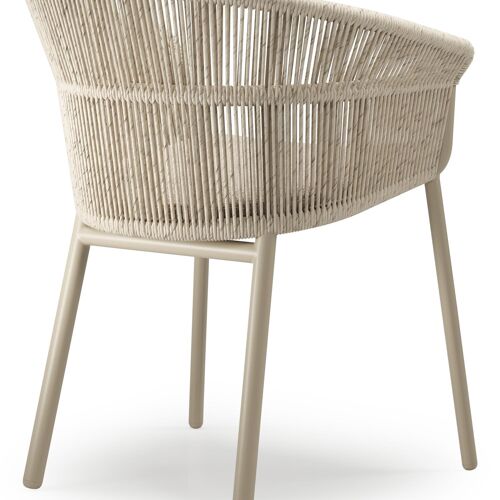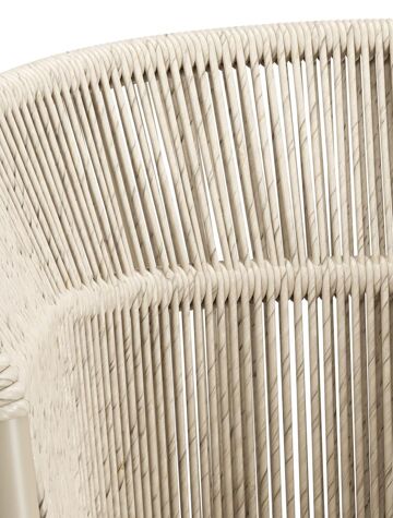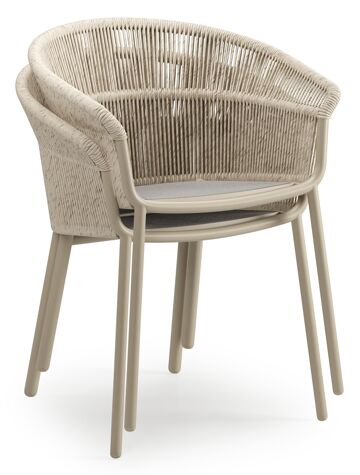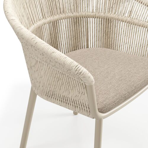 Matera tuinstoel in beige aluminium en beige gedraaide ronde wicker met kussen in rustic weather+ softtouch | Exterioo