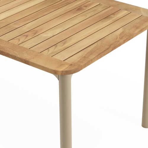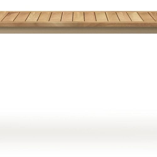 Een tafelblad uit teak staat gelijk aan bijzondere kwaliteit en natuurlijk design. Teak is een kwalitatieve houtsoort gekenmerkt door zijn hardheid. Aangezien hout leeft, kan de structuur of kleur licht anders zijn dan op het beeld weergegeven.
