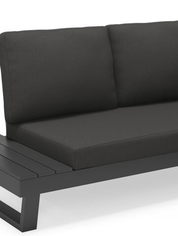 Het frame van de lounge is gemaakt uit roestvrij aluminium, een sterk, maar toch licht materiaal dat makkelijk verplaatsbaar is. Het oppervlak is glad afgewerkt waardoor het geen vuil aantrekt en onderhoudsvriendelijk is. De poedercoating zorgt voor de UV- en weersbestendigheid van je meubel. De loungekussens zijn inbegrepen en gemaakt uit een kwalitatieve Sunbrella® Premium stof. De kussens worden gemaakt uit het luxueuze Sunbrella®-materiaal. Deze stof is geweven met een vezel die tot in de kern gekleurd is. Daardoor is het kussen kleurvast en bestand tegen felle zonnestralen. Daarnaast is de stof ook waterafstotend, slijtvast, vuilafstotend en vlekbestendig. Dit materiaal wordt bijvoorbeeld ook gebruikt bij het dak van cabrio's. De kussens beschikken over één laag sneldrogend schuim waardoor ook schimmels geen kans krijgen.