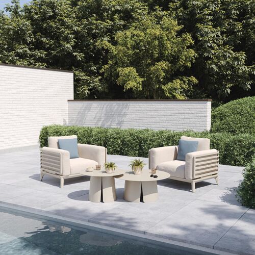 Mosa loungestoel in beige aluminium met rustic weather+ softtouch kussens | Exterioo
