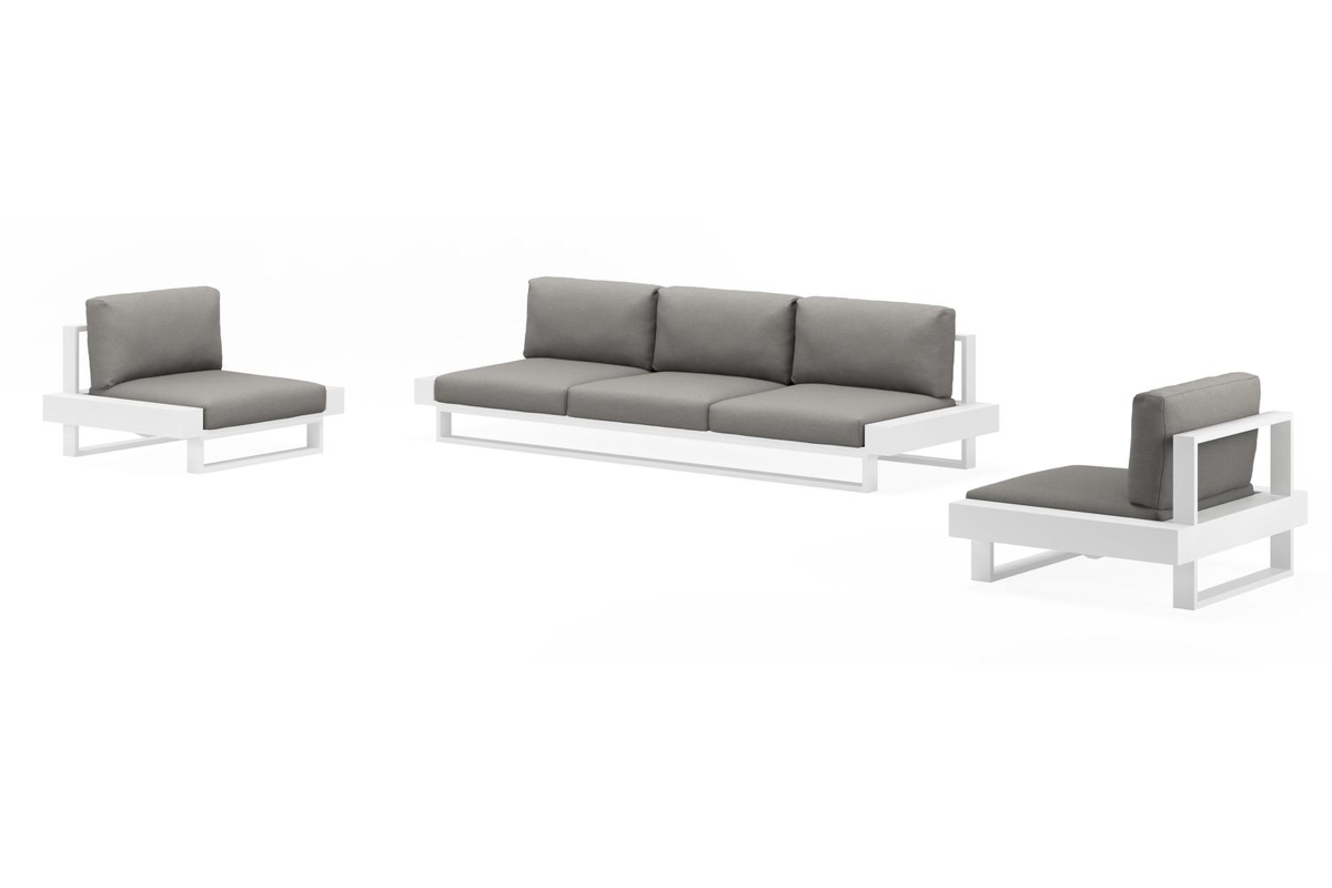 Nano loungeset in wit aluminium met grijs coussins en Weather+ Softtouch kussens | Exterioo
