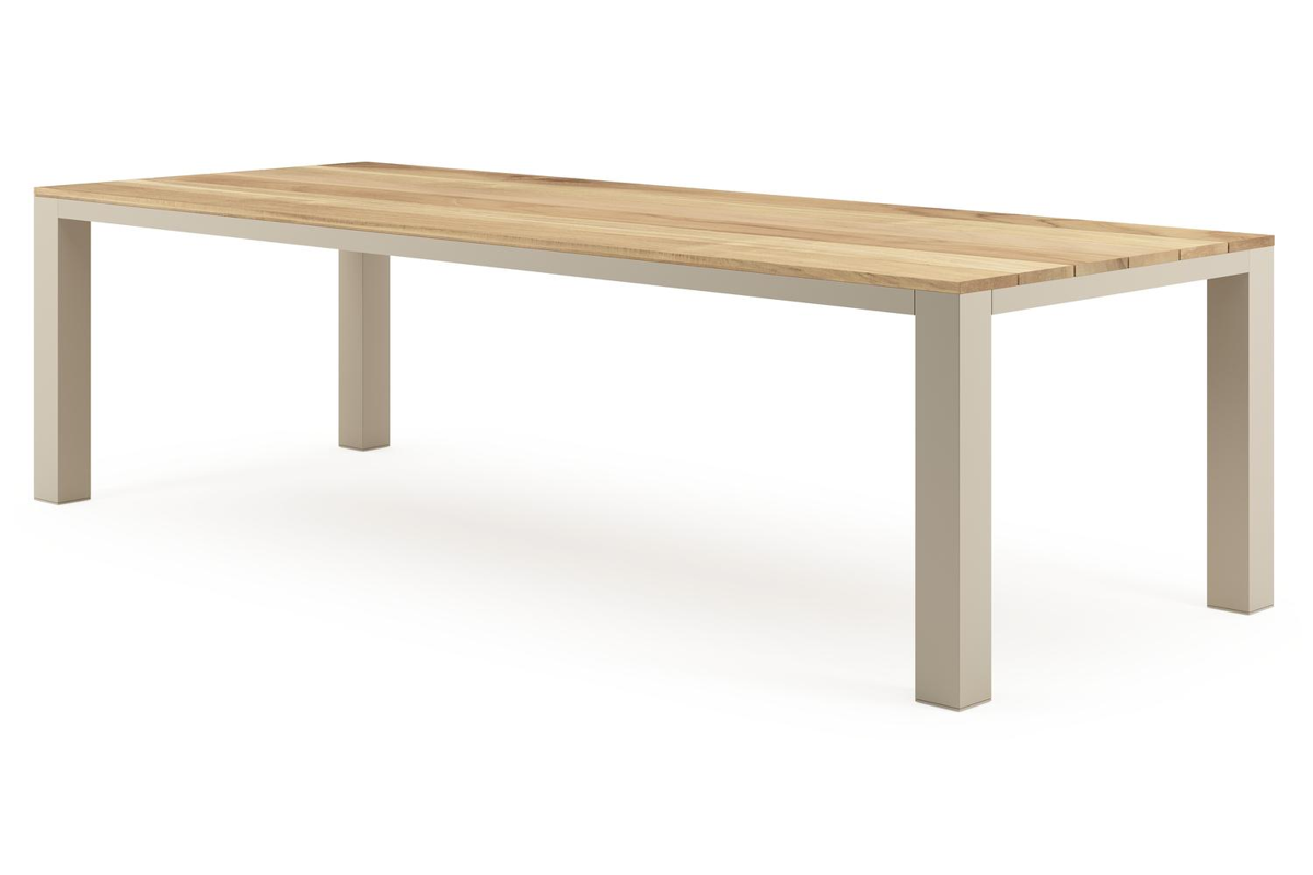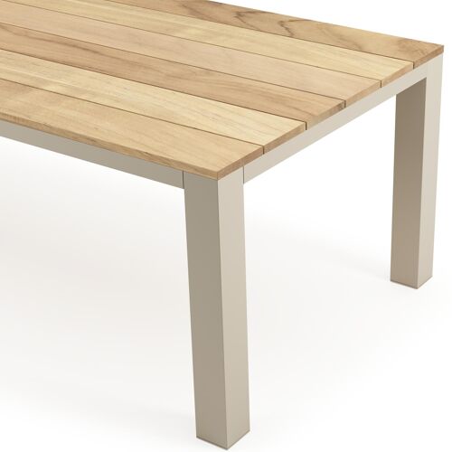 Een tafelblad uit teak staat gelijk aan bijzondere kwaliteit en natuurlijk design. Teak is een kwalitatieve houtsoort gekenmerkt door zijn hardheid. Aangezien hout leeft, kan de structuur of kleur licht anders zijn dan op het beeld weergegeven.