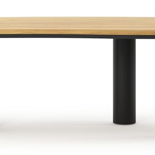 De Organo tuintafel onderscheidt zich door zijn uniek ontwerp, met een organisch gevormd tafelblad dat een eigentijdse uitstraling heeft. De tafel rust op een robuuste, dikke ronde poot en twee fijne ronde poten. Samen creëren ze een meesterlijke balans tussen luxe en moderniteit, waardoor deze tafel het pronkstuk van je buitenruimte wordt.