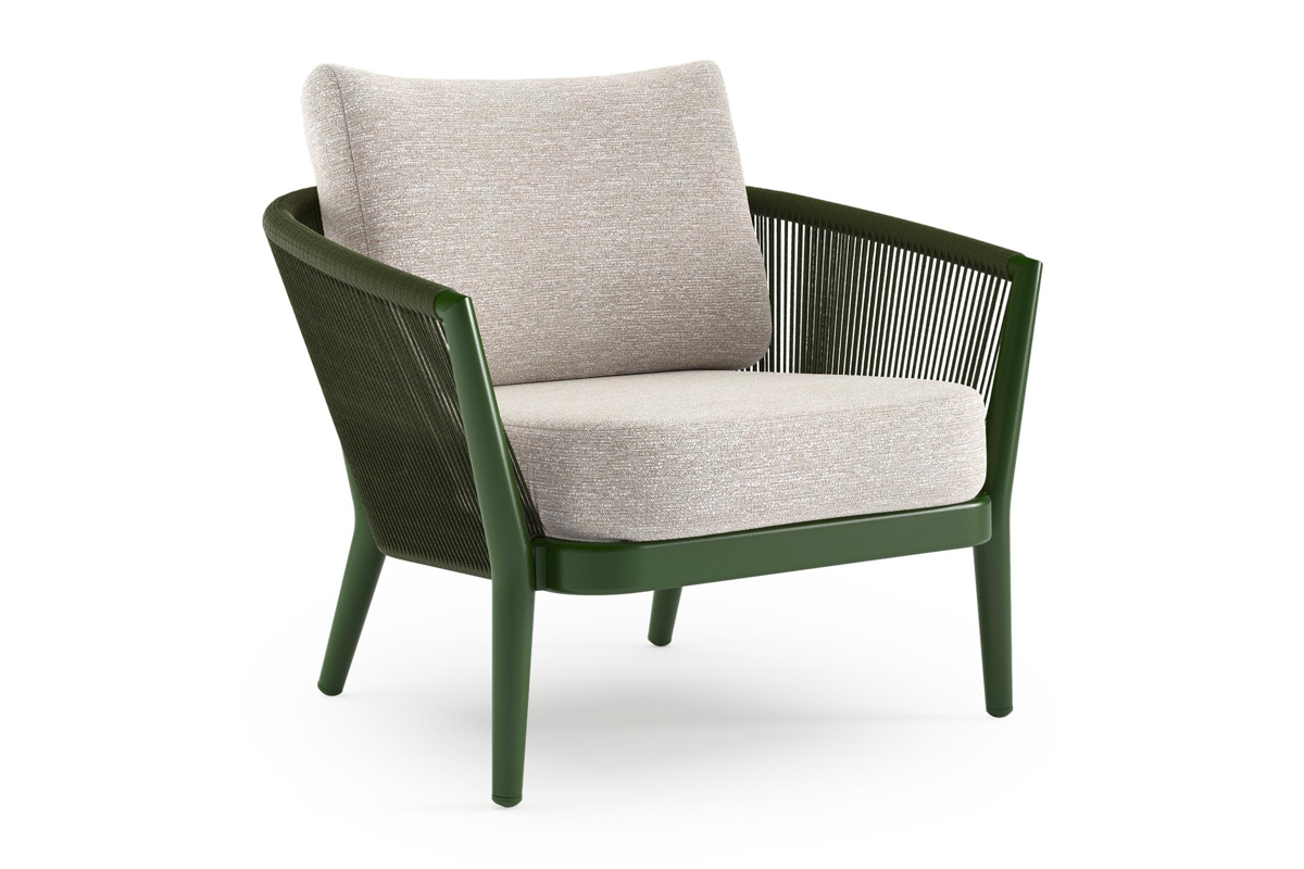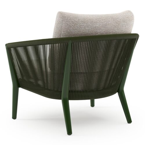 Orso loungestoel in groen aluminium en groen verticaal geweven ronde rope met Tundra Sand all weather sunbrella® luxe kussen | Exterioo