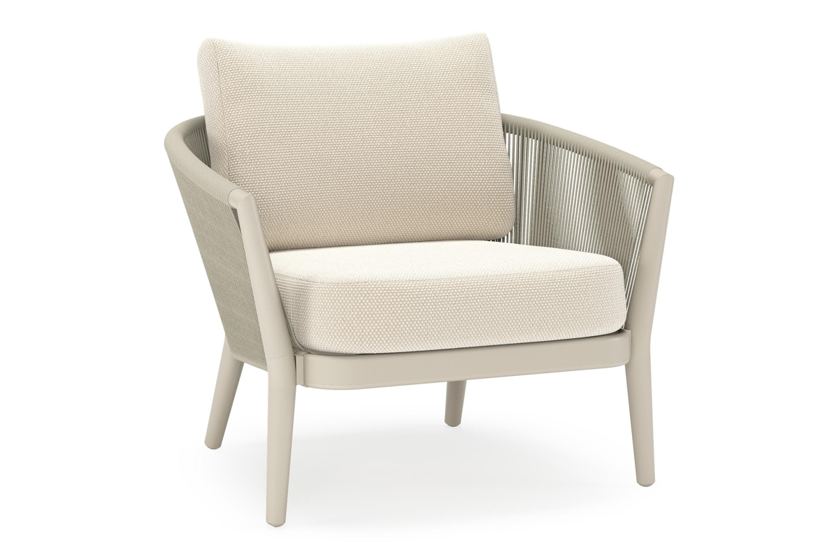 Orso loungestoel in beige aluminium en beige verticaal geweven ronde rope met Althea Off White all weather cosytica kussen | Exterioo
