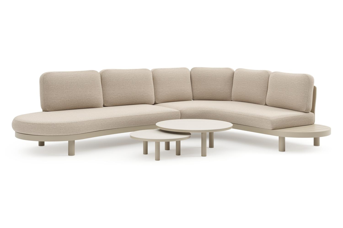 Palma loungehoek in beige aluminium met rustic weather+ softtouch kussens en loungetafel | Exterioo