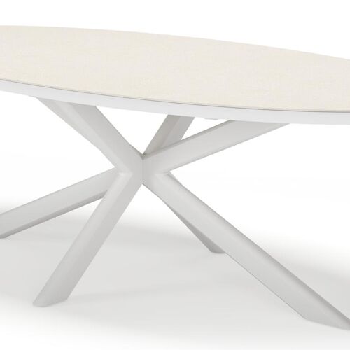 De Pamplona tuinset straalt met zijn afgeronde vorm en opvallende kruispoot een robuuste hedendaagse look uit. Deze tuinset is ideaal voor een groot gezelschap.