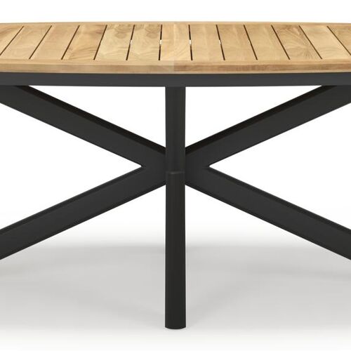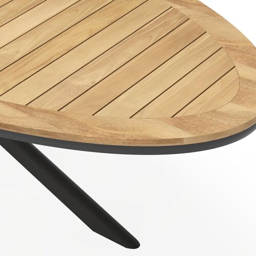 Pamplona tuintafel ovaal in zwart aluminium en teak natural finish - L 270 x B 115 x H 72 cm | Exterioo