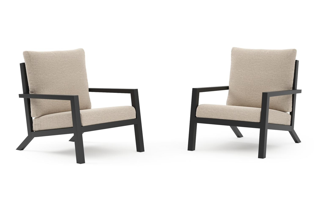 Set van 2 Arnes loungestoelen in zwart aluminium met rustic weather+ softtouch kussens | Exterioo