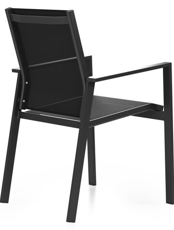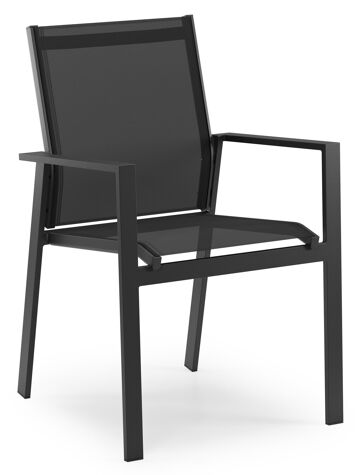 De Bahia stoel heeft een strak en eenvoudig design met uitstekend zitcomfort. Het frame is gemaakt uit roestvrij aluminium. De zitting en rug zijn gemaakt uit stevige textilene, een stijlvol en onderhoudsvriendelijk materiaal. De stoel is stapelbaar en dus makkelijk op te bergen.