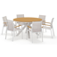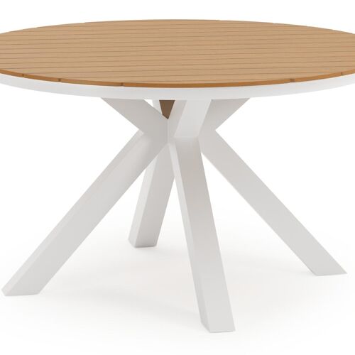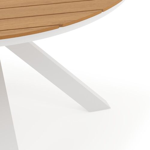 De Tora tuintafel is een collectie met ronde tafels. De kenmerkende kruispoot splitst zich onder het frame uit in vier gespreide poten, wat zorgt voor extra stabiliteit.