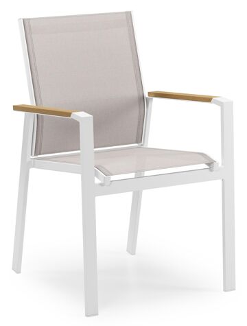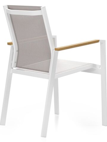 De Bahia stoel heeft een strak en eenvoudig design met uitstekend zitcomfort. Het frame is gemaakt uit roestvrij aluminium. De zitting en rug zijn gemaakt uit stevige textilene, een stijlvol en onderhoudsvriendelijk materiaal. De stoel is stapelbaar en dus makkelijk op te bergen.