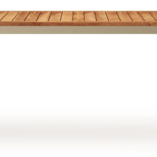 Een tafelblad uit teak staat gelijk aan bijzondere kwaliteit en natuurlijk design. Teak is een kwalitatieve houtsoort gekenmerkt door zijn hardheid. Aangezien hout leeft, kan de structuur of kleur licht anders zijn dan op het beeld weergegeven.