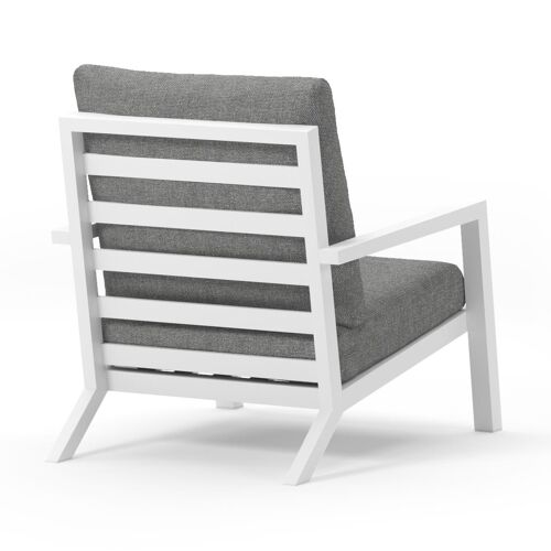 De Alcudia loungebank is de ideale uitbreiding als extra zitplaats bij jouw loungeset.Het frame van de 1-zit is gemaakt uit roestvrij aluminium, een sterk, maar toch licht materiaal dat makkelijk verplaatsbaar is. Het oppervlak is glad afgewerkt waardoor het geen vuil aantrekt en onderhoudsvriendelijk is. De poedercoating zorgt voor de UV- en weersbestendigheid van je meubel.Het kussen is gemaakt uit polyester: een zachte, synthetische stof. Polyester krimpt of kreukt nauwelijks en is een stevige stof. Je kan het kussen makkelijk wassen aangezien het kussen afritsbaar is. We raden je aan de kussens binnen te nemen bij regen of tijdens de wintermaanden.