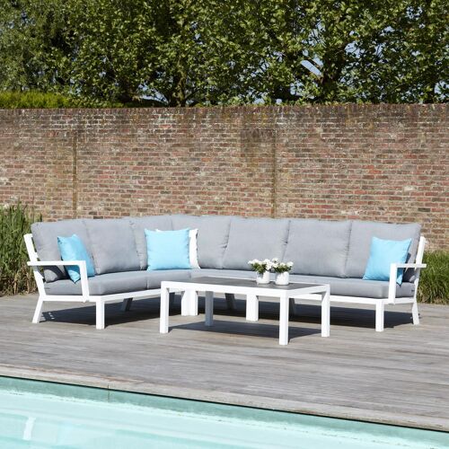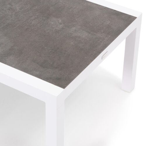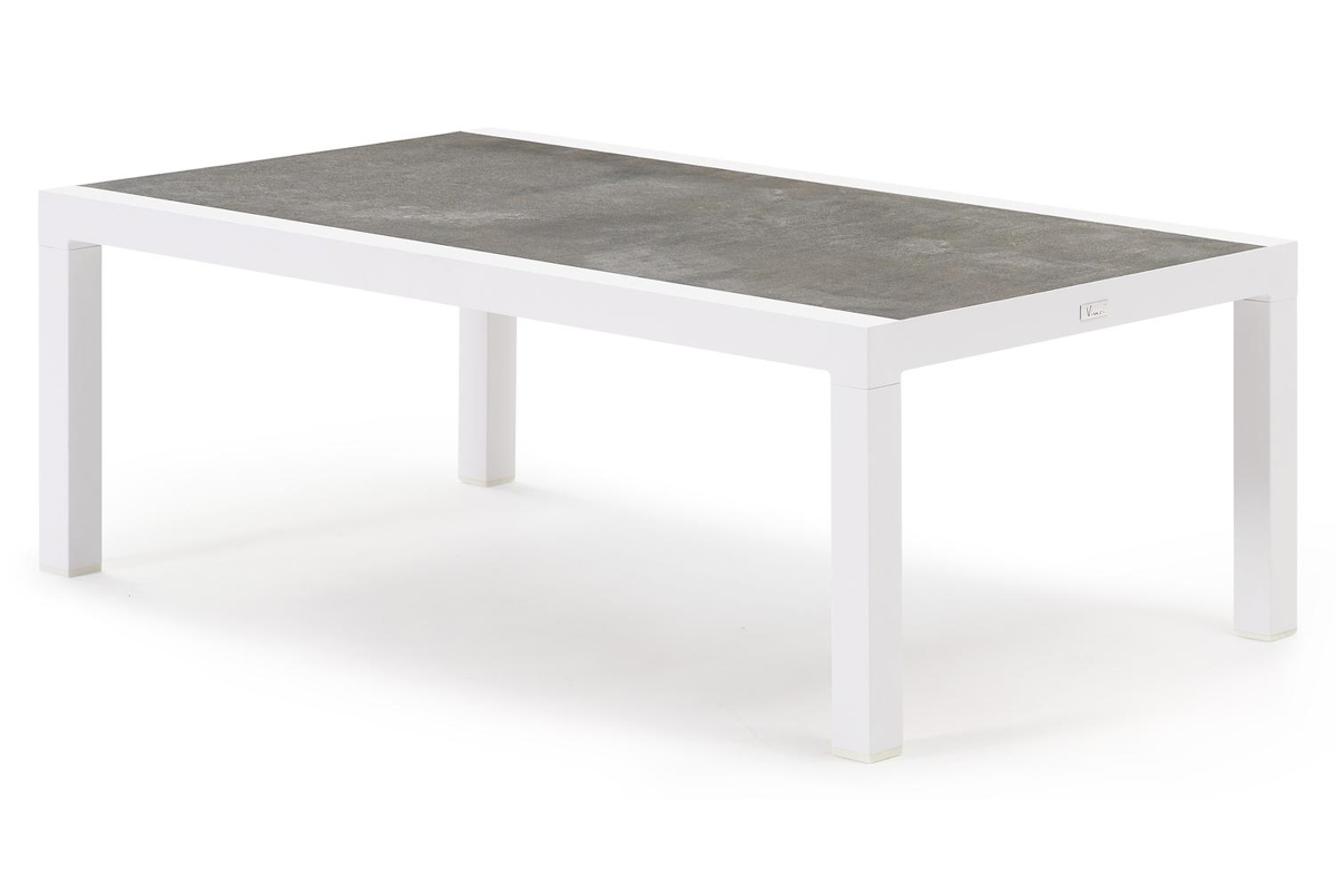 Alcudia loungetafel in wit aluminium en grijs volkeramiek - L 120 x B 70 x H 43 cm | Exterioo