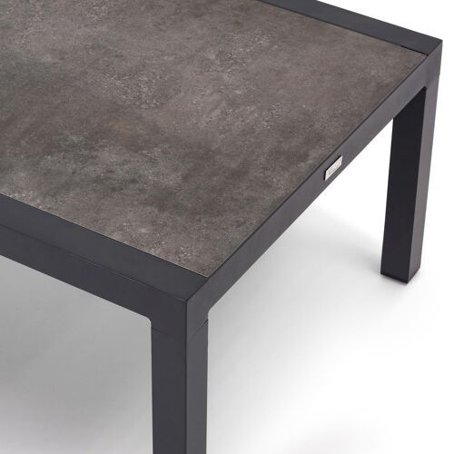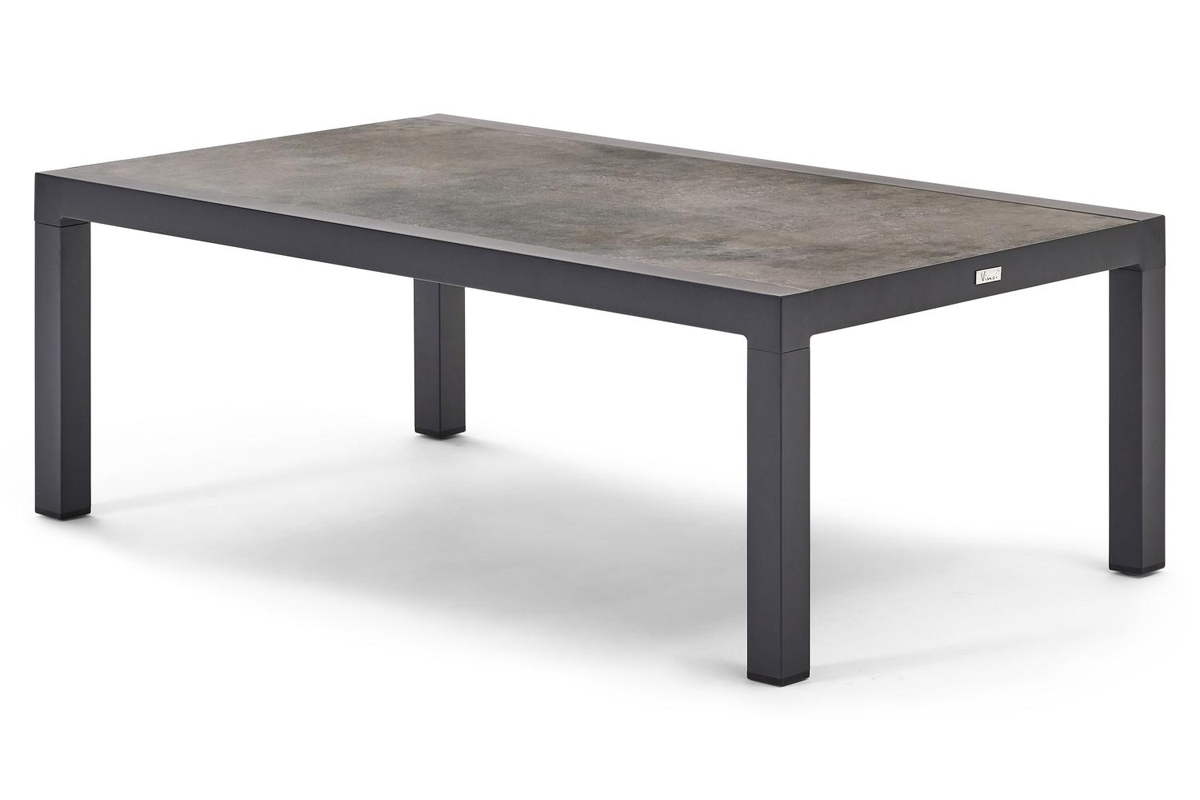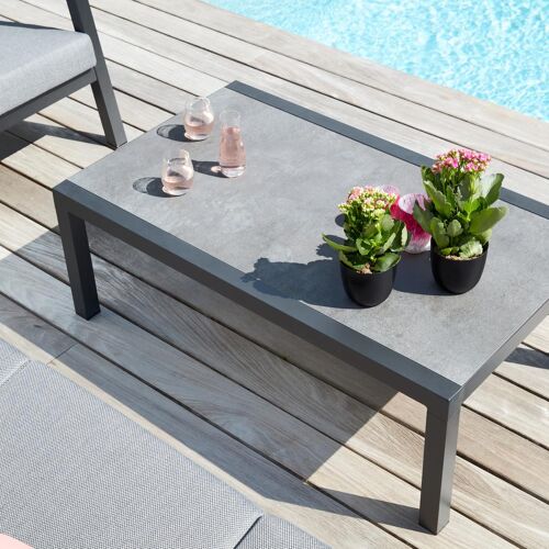Alcudia loungetafel in zwart aluminium en grijs volkeramiek - L 120 x B 70 x H 43 cm | Exterioo