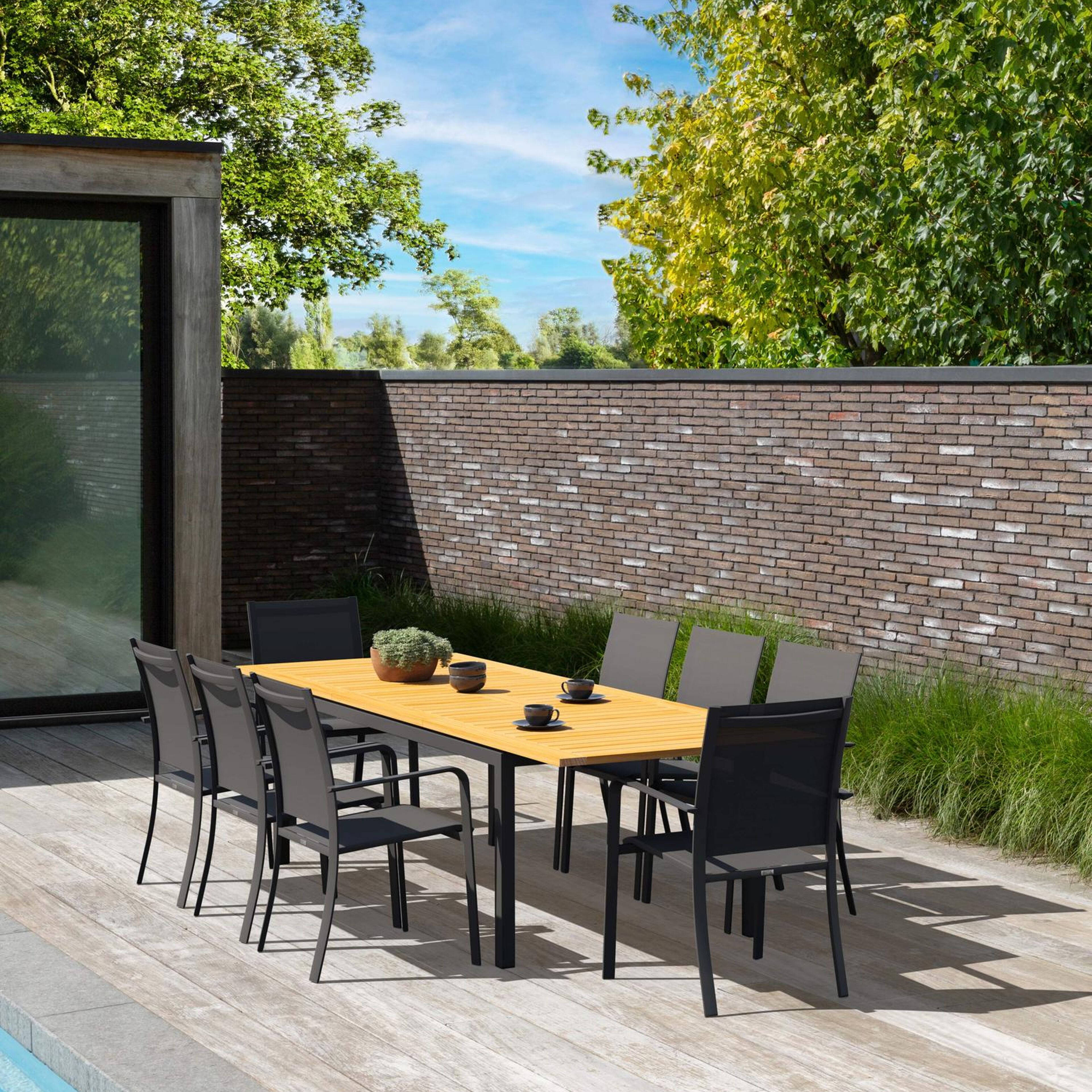 Ervaar onvergetelijke buitenmomenten met de kwalitatieve Amalfi tuinset met verlengbare tafel.