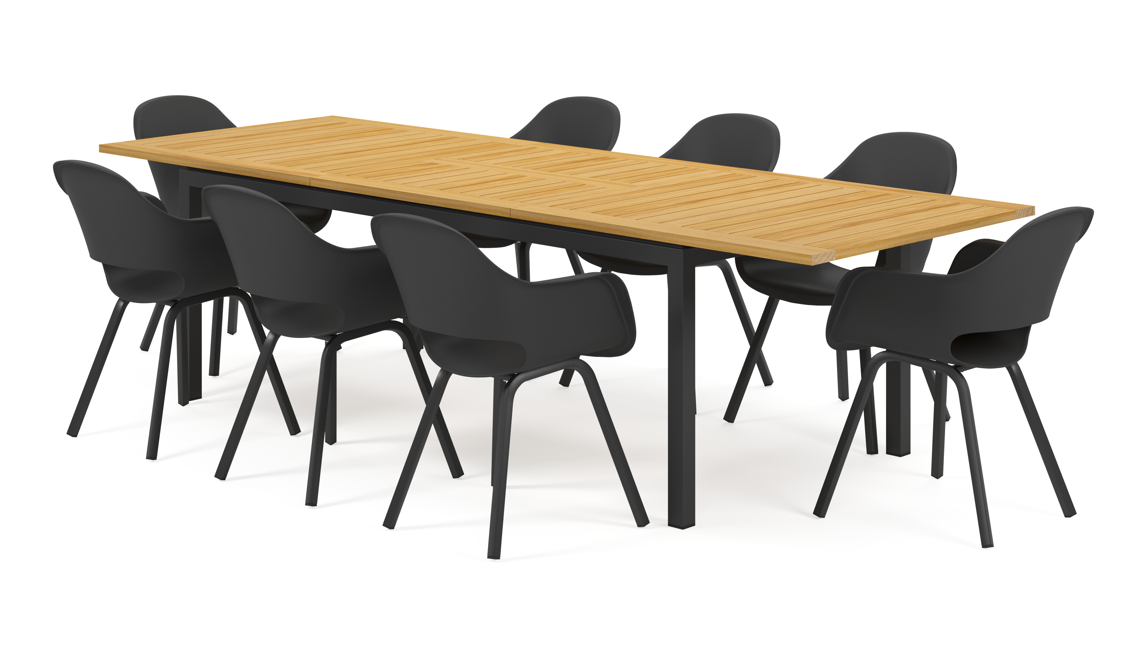 Amalfi tuinset met verlengbare tafel straalt eenvoud uit en creëert een natuurlijk gevoel dankzij de afwerking in teak. De tafel is verlengbaar en klap je makkelijk in met het vlindersysteem, een systeem dat het verlengstuk in de tafel laat verdwijnen.