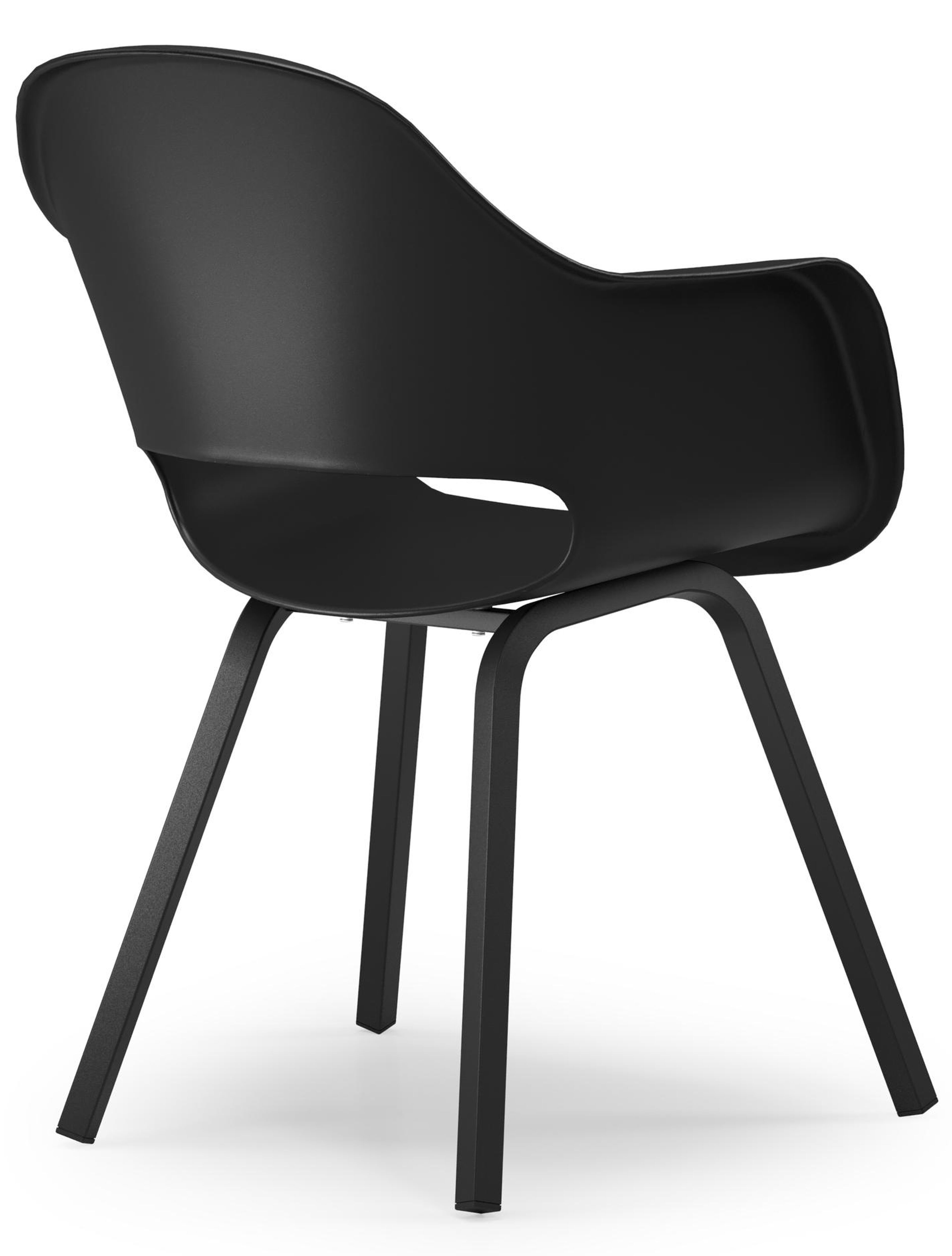 De Artena stoel heeft een uniek design dankzij de opening in de kuip. Het gebogen stoelframe is gemaakt uit roestvrij aluminium. De kuip met armleuningen is gemaakt uit stevige kunststof, een synthetisch en onderhoudsvriendelijk materiaal.