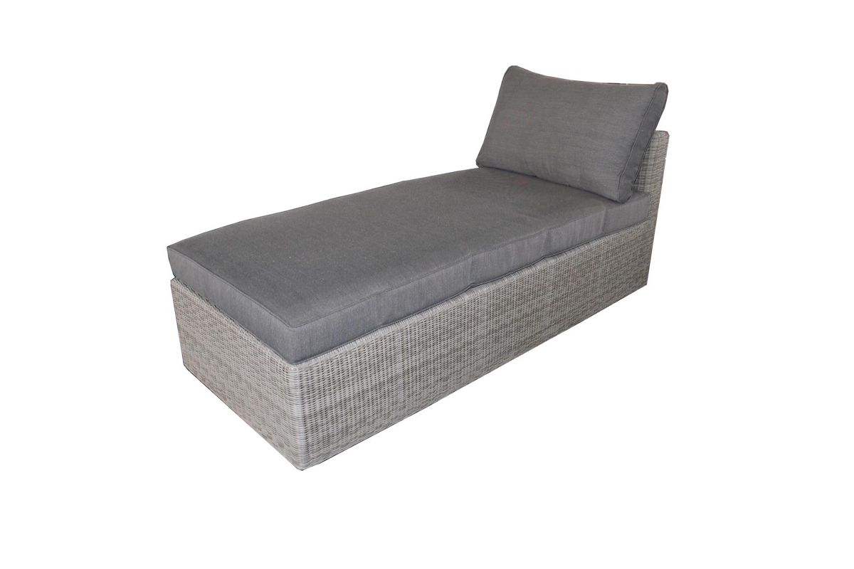 Afzonderlijk te gebruiken of eindeloos combineerbaar met andere stukken uit de Amari serie. Kleur: wit-grijs. UV-bestendig. Incl. zit- en rugkussen, waterafstotend behandeld. Incl. verbindingsstukken. B 72 x D 170 x H 64 cm.