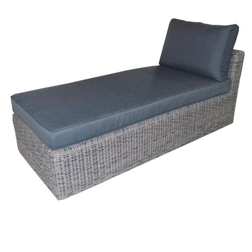 Afzonderlijk te gebruiken of eindeloos combineerbaar met andere stukken uit de Amari serie. Kleur: grijs-zwart. UV-bestendig. Incl. zit- en rugkussen, waterafstotend behandeld. Incl. verbindingsstukken. B 72 x D 170 x H 64 cm.