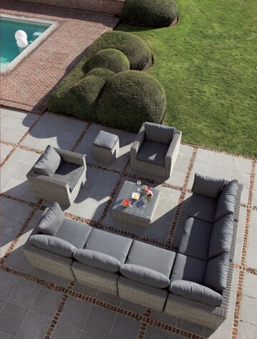 Amari tussenstuk in grijs wicker met polyester kussens | Exterioo