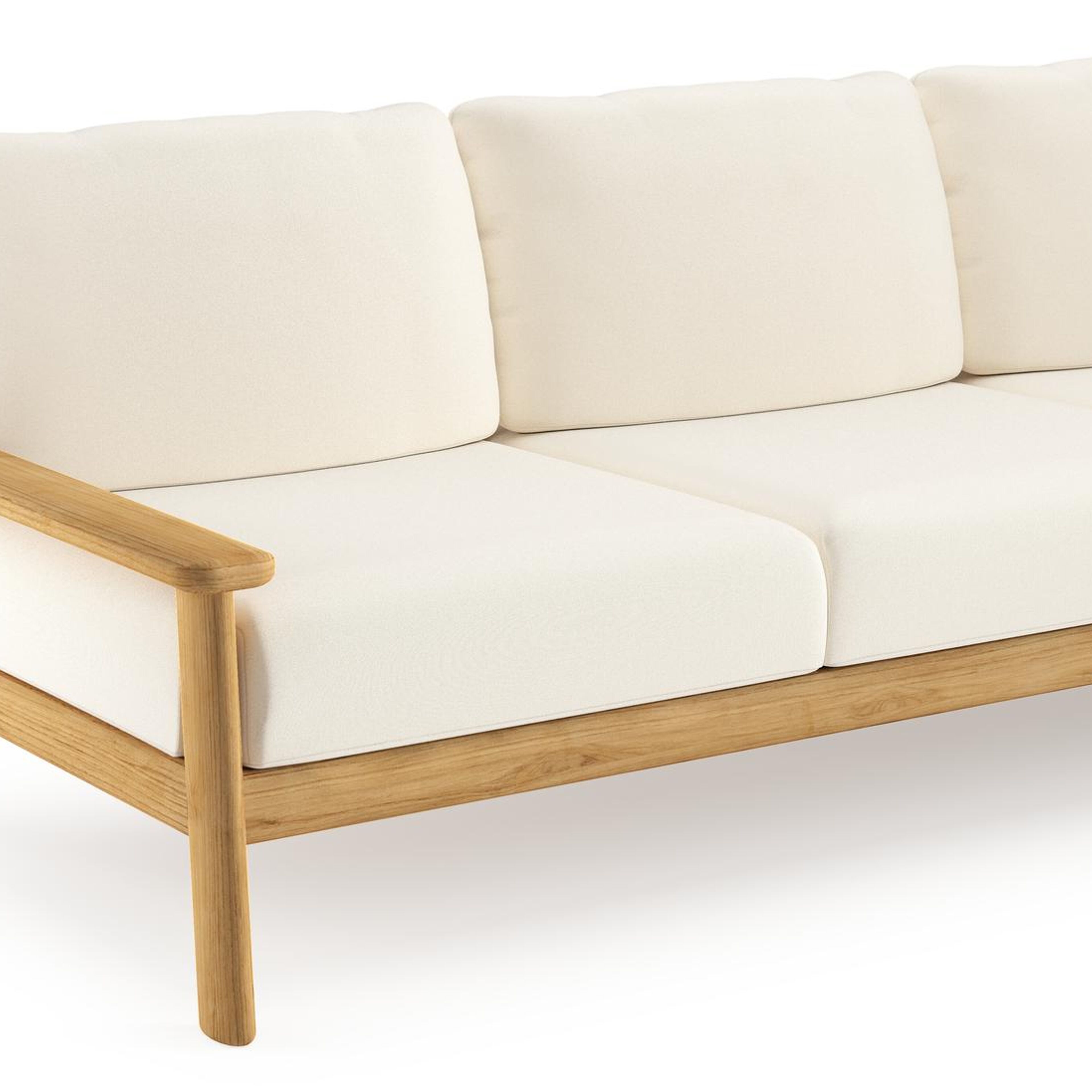 Amaro loungebank in teak met natte white all weather sunbrella® luxe kussen | Exterioo tuinmeubelen