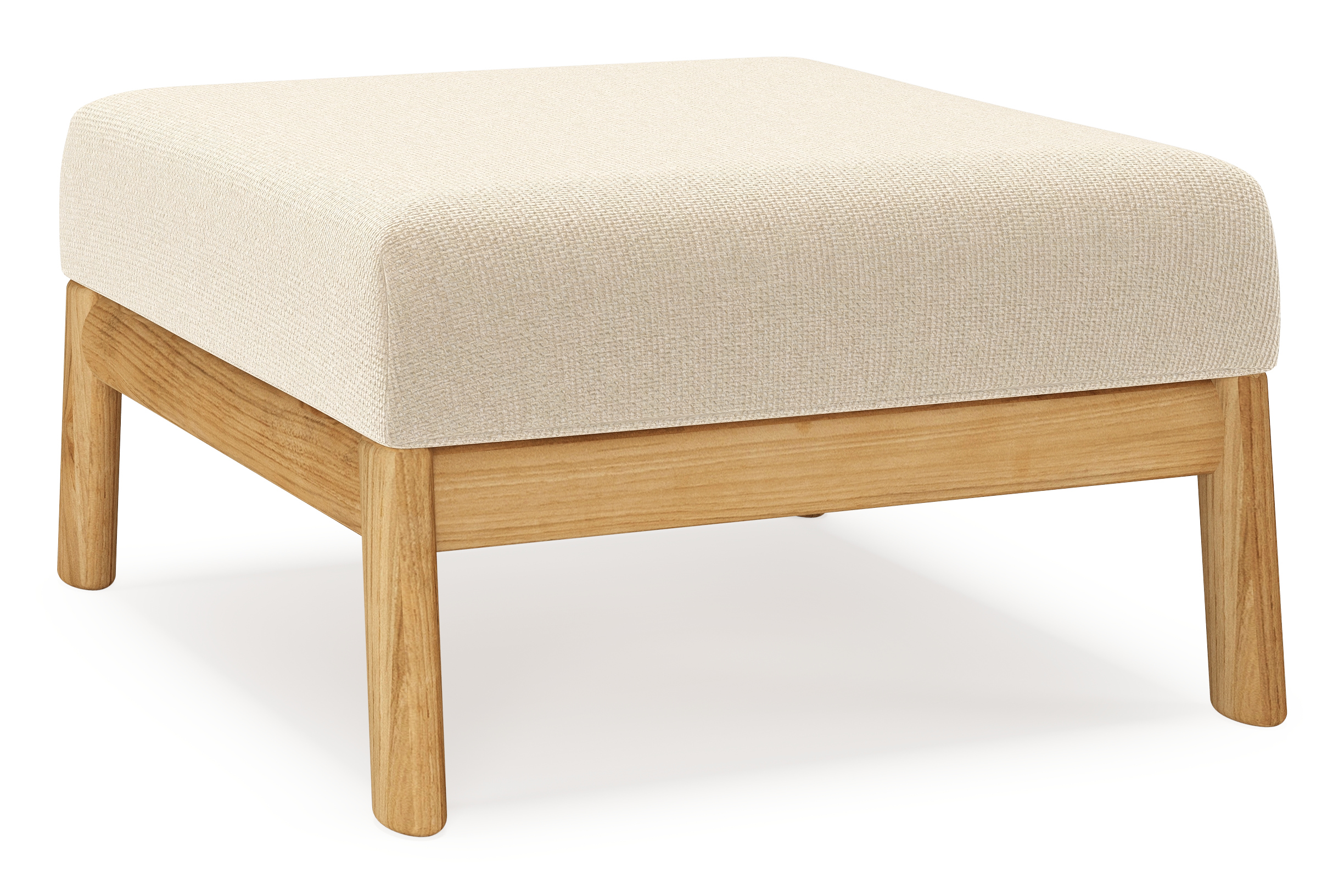 Amaro poef in teak met althea chalk all weather cosytica kussen | Exterioo tuinmeubelen
