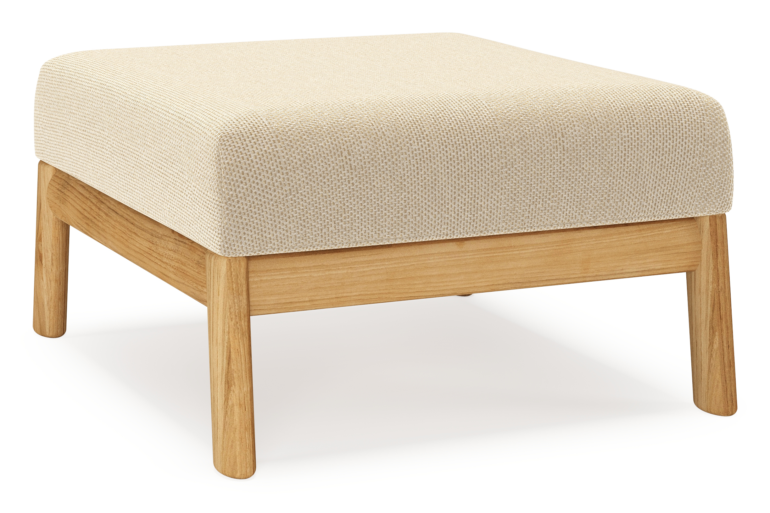 Amaro poef in teak met althea camel all weather cosytica kussen | Exterioo tuinmeubelen
