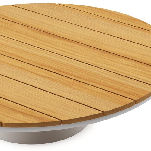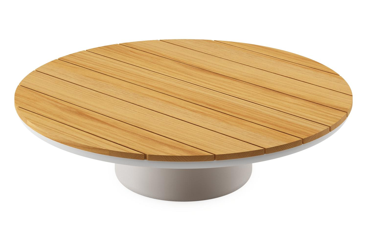 Amico loungetafel rond in wit aluminium en teak - Dia. 110 x H 28 cm | Exterioo