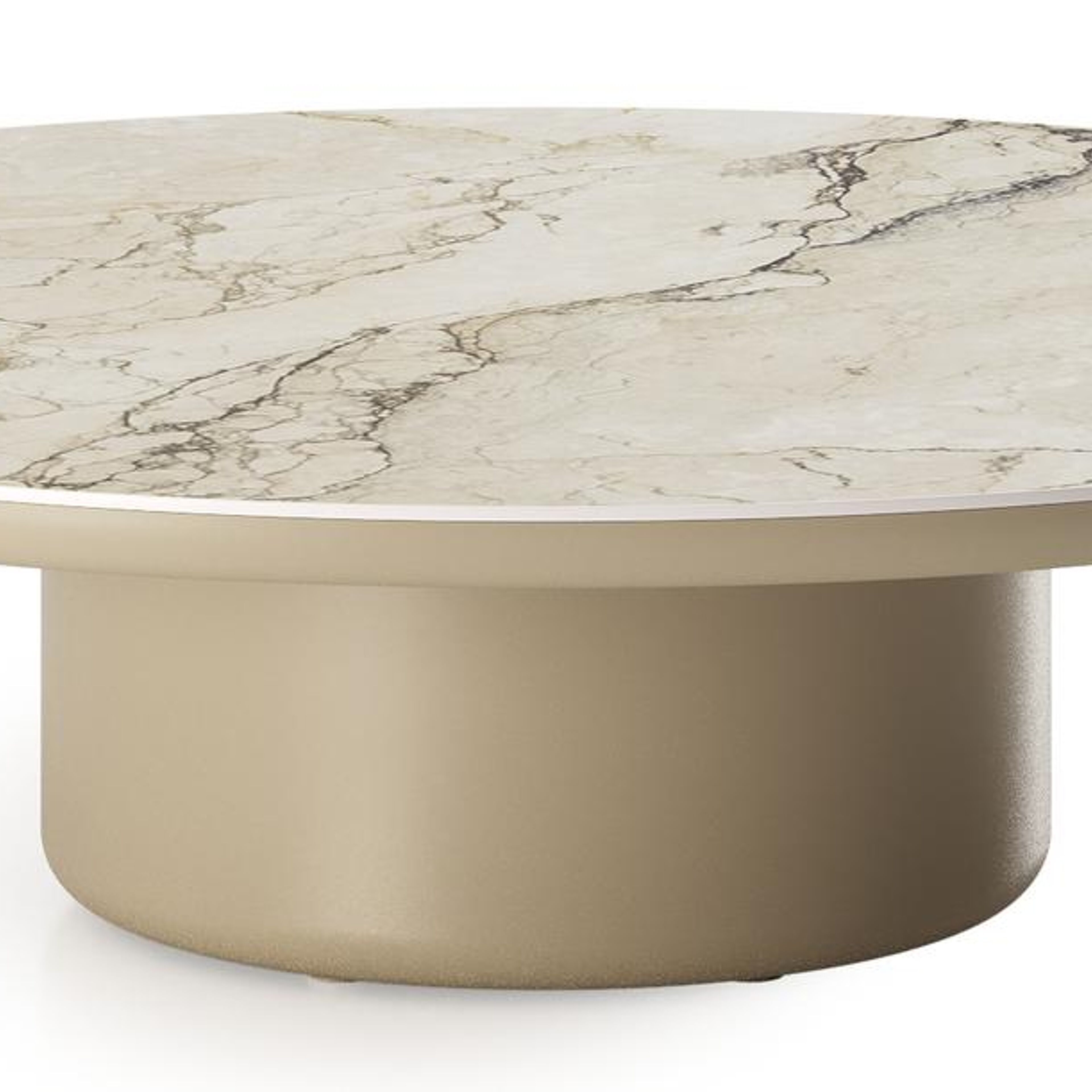 Amico loungetafel rond in beige aluminium en volkeramiek Colorado Dunes - Dia. 110 x H 28 cm | Exterioo tuinmeubelen