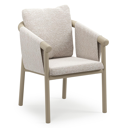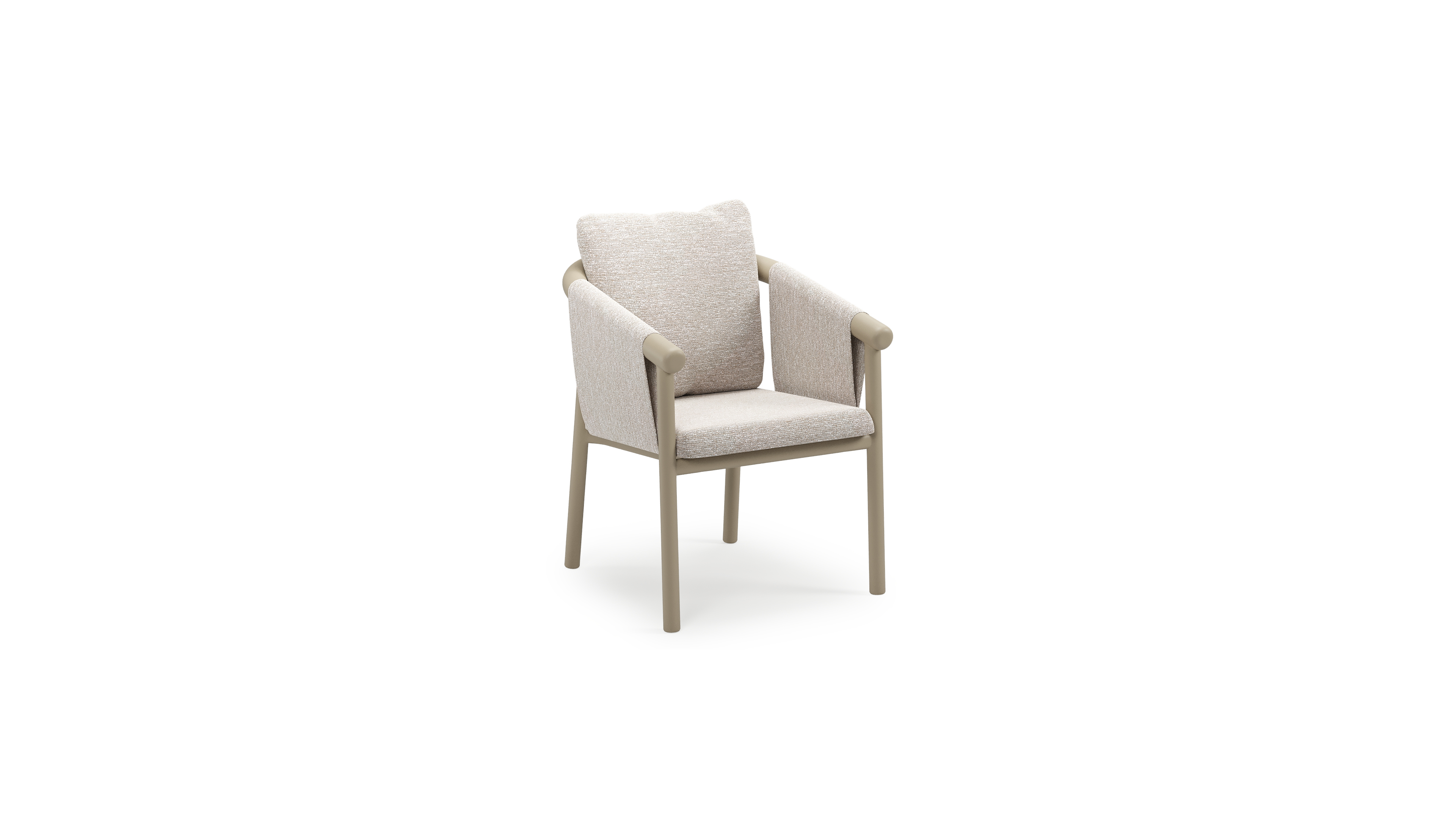 De Amico tuinstoel valt op door haar omhullende design met geïntegreerde armleuningen en een royale rug. Het uitgebalanceerde silhouet geeft de stoel een elegante en uitnodigende uitstraling.