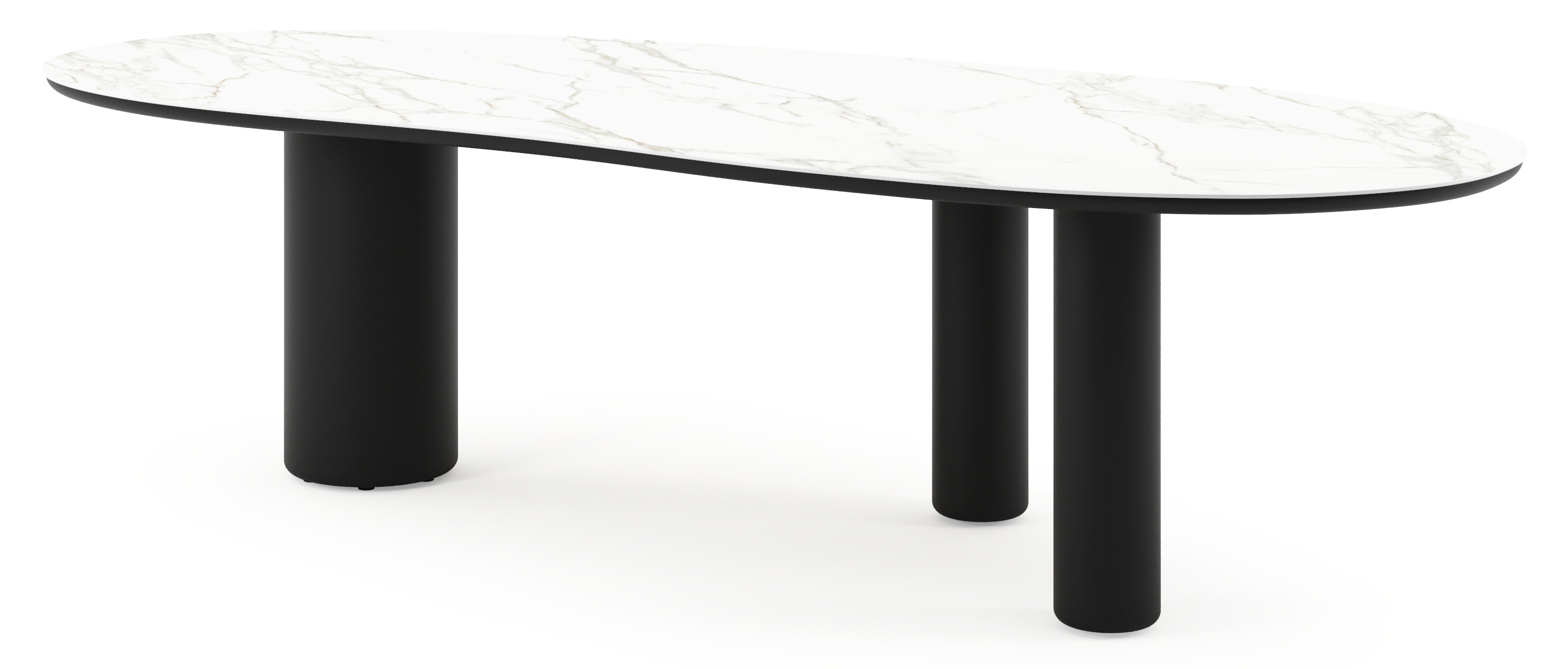 Amico tuintafel organisch in zwart aluminium en volkeramiek Calacatta - L 280 x B 120 x H 73.5 cm | Exterioo tuinmeubelen