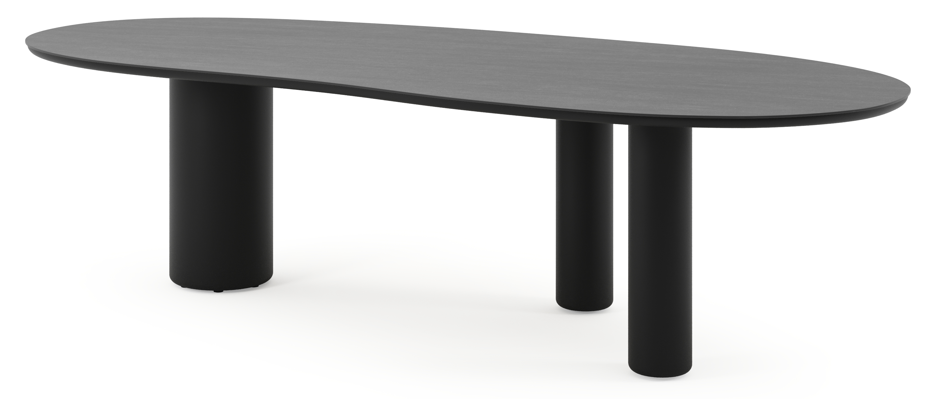 Amico tuintafel organisch in zwart aluminium en volkeramiek Basalt Black - L 280 x B 120 x H 73.5 cm | Exterioo tuinmeubelen