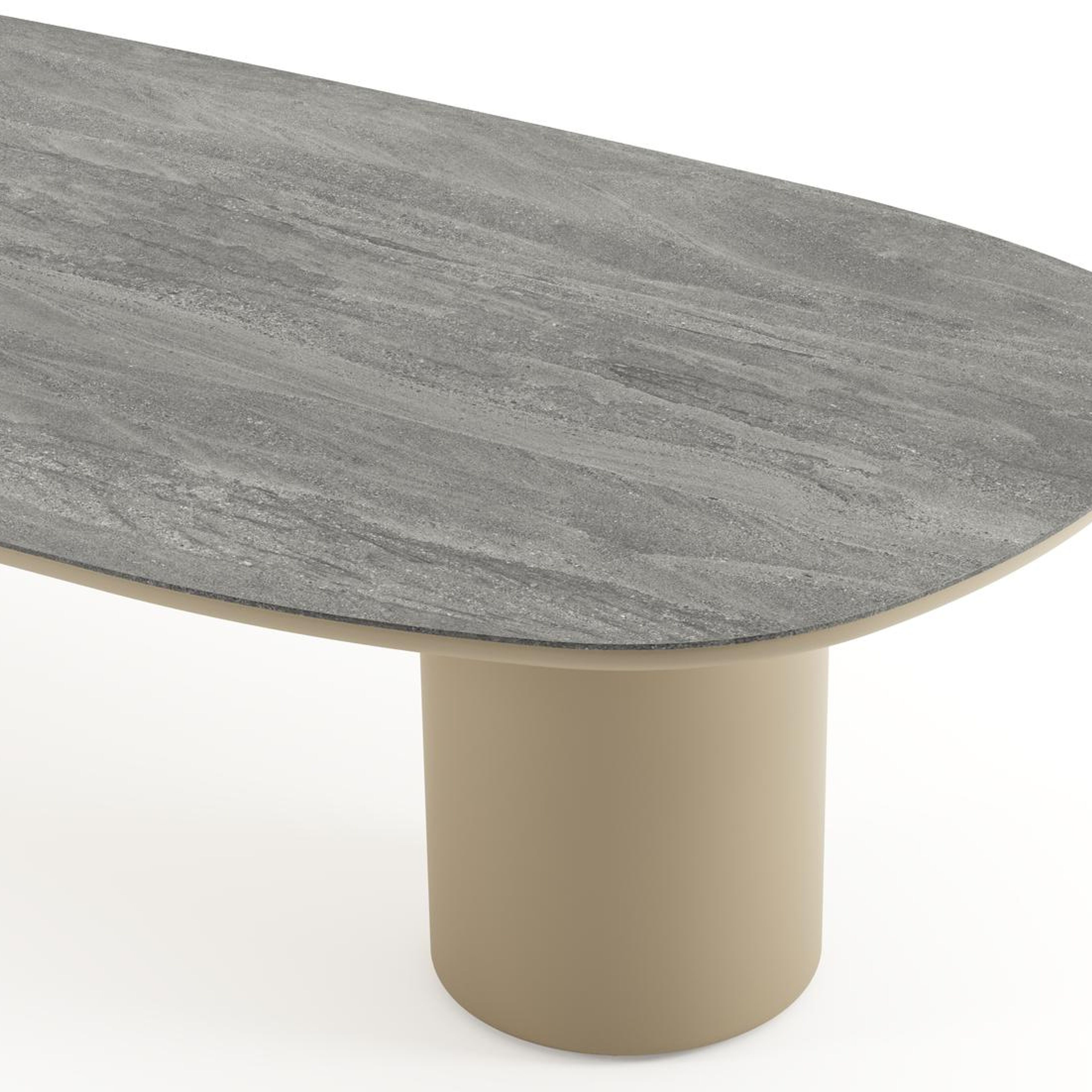 Amico low dining tuintafel bombo in beige aluminium en volkeramiek Aspen Grey - L 320 x B 130 x H 61 cm | Exterioo tuinmeubelen
