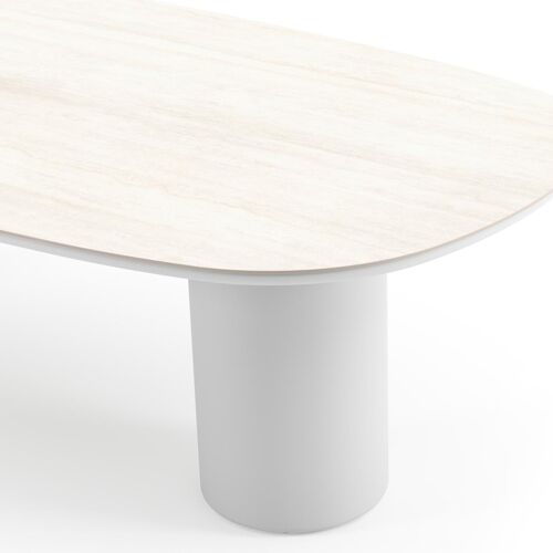 Amico tuintafel bombo in wit aluminium en volkeramiek Travertino Bianco - L 270 x B 125 x H 73.5 cm | Exterioo